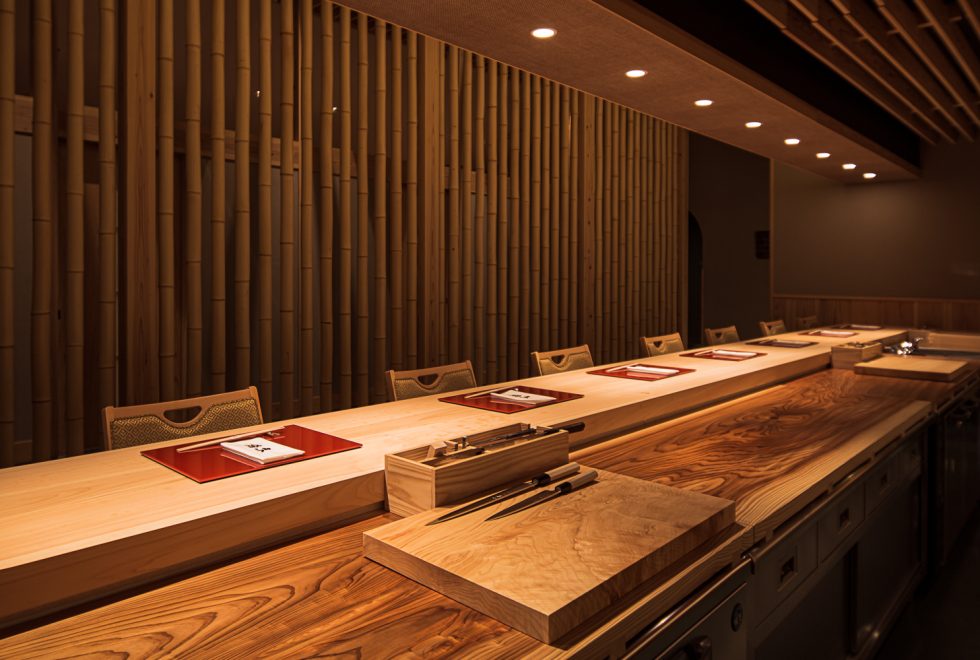 食材、調理法にこだわった美味しい料理を召し上がって頂ける日本料理店です。 2021年には、ミシュランの星も獲得しました。 "大きなカウンターでおもてなしをしたい"という店主の想いの詰まった建物です。 竹をメインに落ち着いた雰囲気の中で、お席から木々を眺めながらお食事ができます。